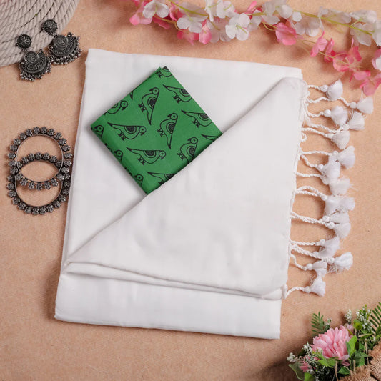 ATTRACTIVE RAMA,WHITE COLOUR TRADITIONAL LOOKING COTTON SAREE 2