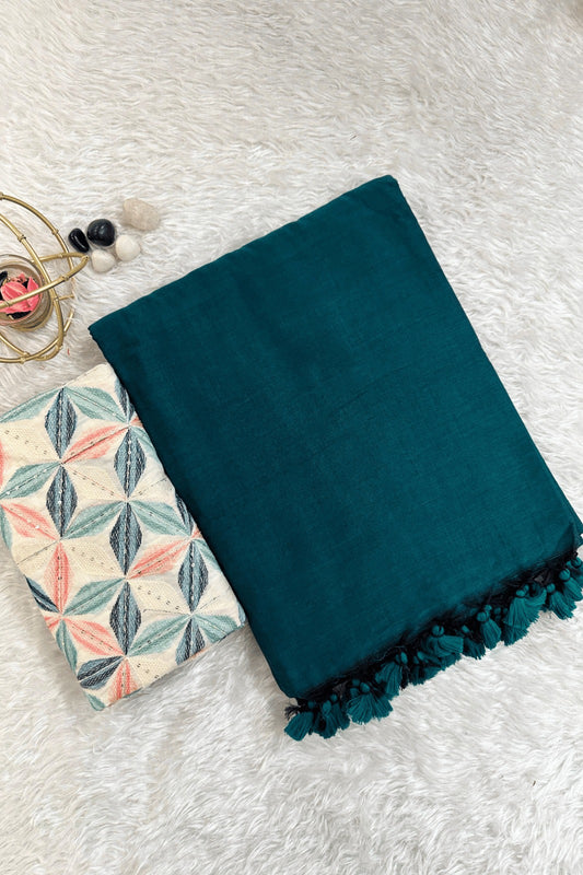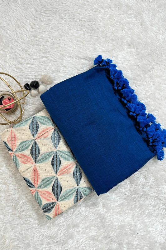 Gorgeous Indigo Cotton Saree With Designer Blouse