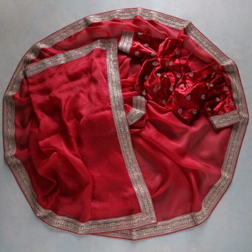 Red Colour Rangoli Silk Embroidery And Thread Work Saree With Blouse