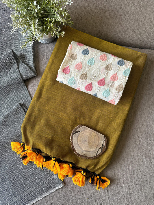 MUSTARD COLOUR TRADITIONAL LOOKING KHADI COTTON SAREE