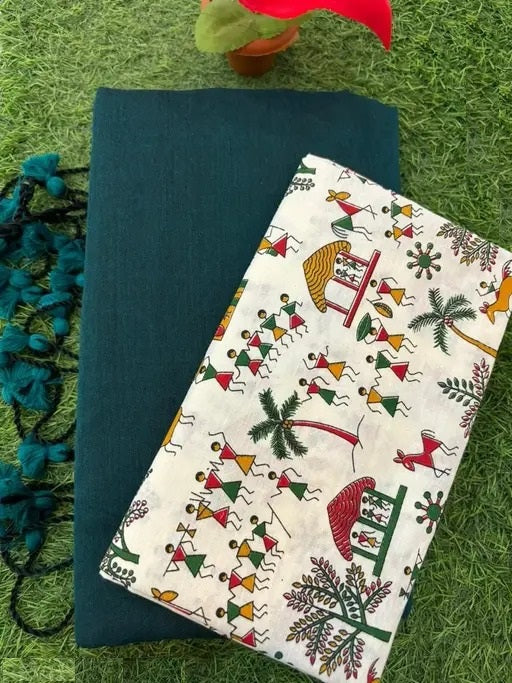 ATTRACTIVE RAMA,WHITE COLOUR TRADITIONAL LOOKING COTTON SAREE 2