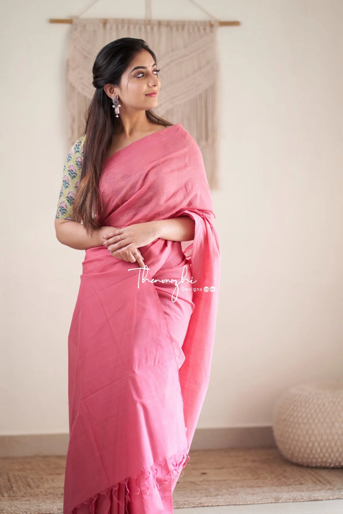 Bubblegum - Pink Mangalagiri Plain Cotton Saree 08