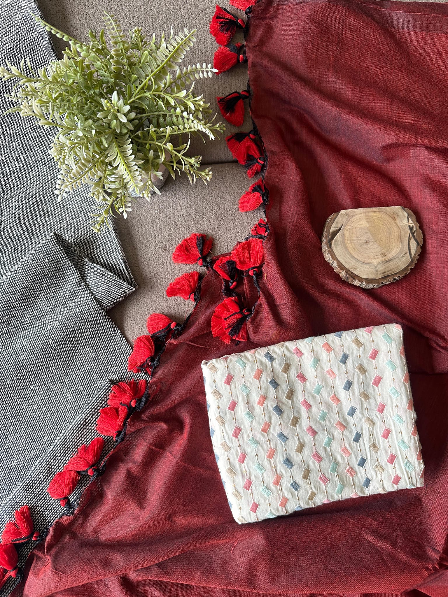 MAROON COLOUR TRADITIONAL LOOKING KHADI COTTON SAREE