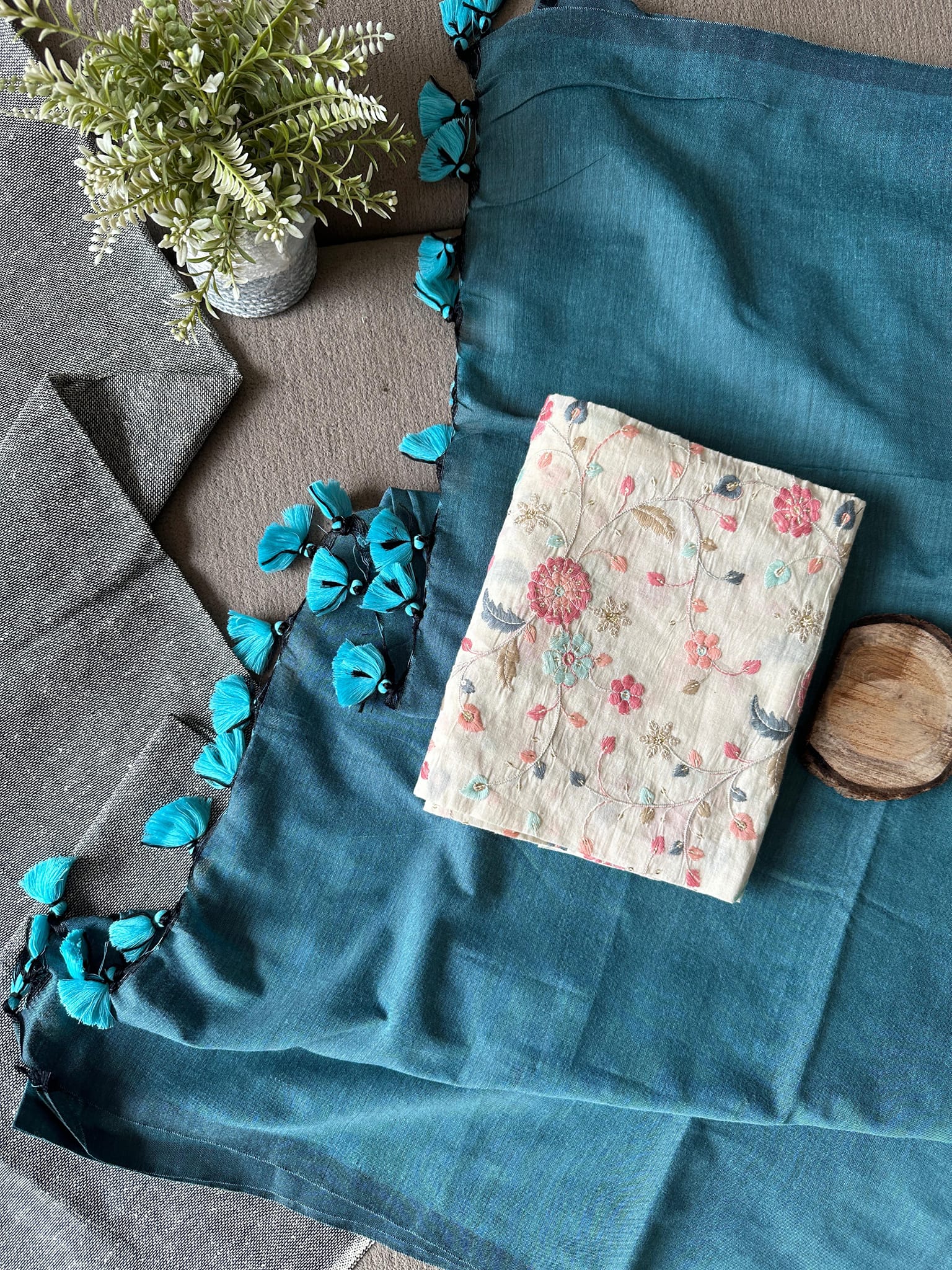 BLUE COLOUR TRADITIONAL LOOKING KHADI COTTON SAREE