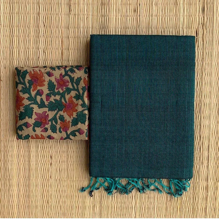 Dazzling Rama Colour Traditional Looking Chanderi Cotton Saree