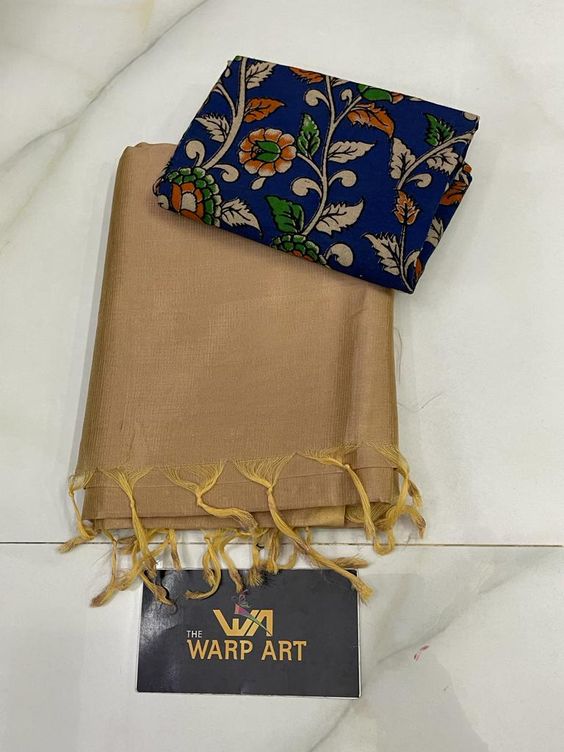 Tan Colours Beautiful Row Silk Plain Saree With Print Blouse 1