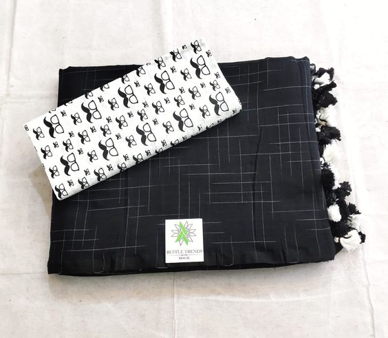 BLACK. WHITE. COLOUR TRADITIONAL LOOKING CHANDERI COTTON SAREE
