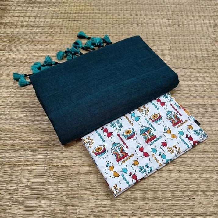 rama Colour Traditional Looking Chanderi Cotton Saree