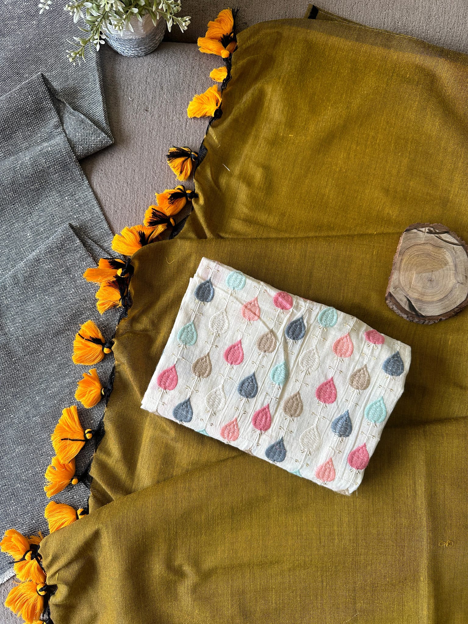 MUSTARD COLOUR TRADITIONAL LOOKING KHADI COTTON SAREE